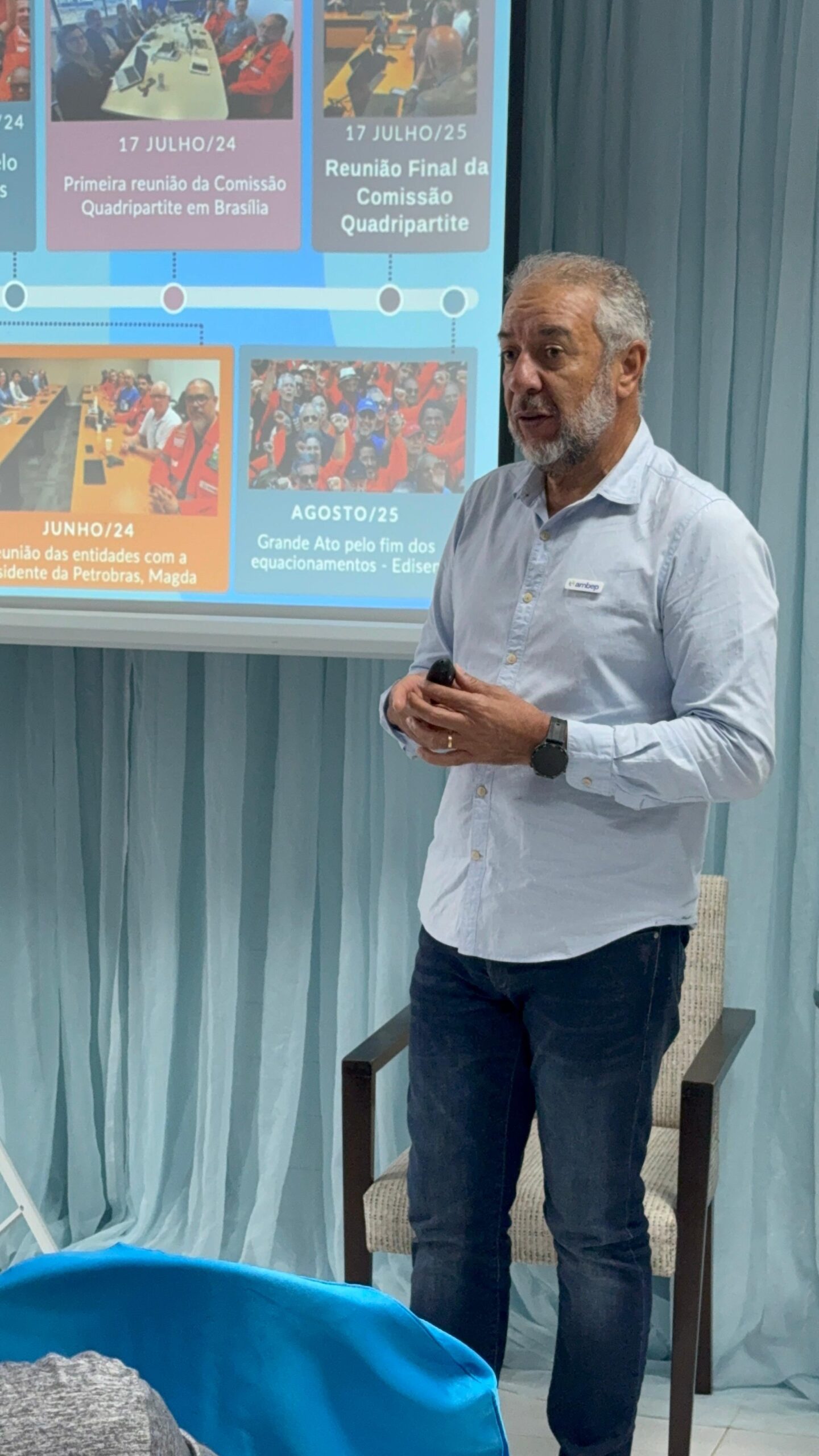 Nesta última quarta-feira (26/11), o presidente Francisco Barreto esteve presente na UR Aracaju para mais uma edição do 2º Ciclo de encontros do “Bate-papo com o presidente”. Durante o evento, Barreto aproveitou o espaço para apresentar os últimos feitos da AMBEP, Informações sobre o Conselho Deliberativo. Após a fala de Barreto, a presidente da AMBEP Seguros, Érika Furman trouxe mais detalhes sobre nossos serviços de Seguros e Saúde e esclareceu dúvidas de quem estava presente. Foi um momento importante para escutar as dúvidas e comentários de nossos Associados e Beneficiários.