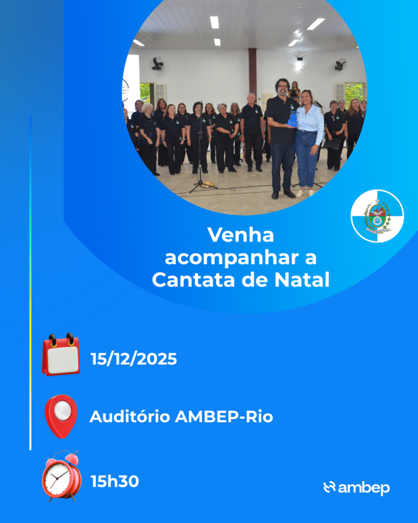 No dia 15 de dezembro, o Coral da AMBEP-Rio de Janeiro realiza a “Cantata de Natal”. O evento acontece no Auditório da UR Rio de Janeiro, às 15h30. Após a apresentação, será servido um coquetel de encerramento.